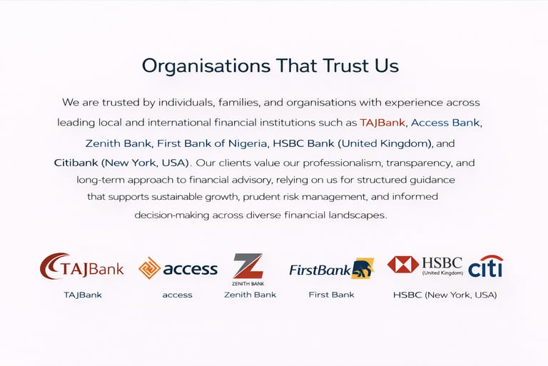 With experience from top Nigerian banks, we guide families and organizations toward smart, sustainable financial decisions.